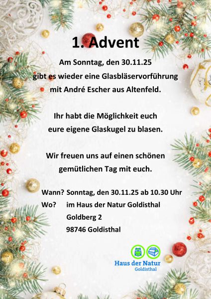 Glasbläservorführung am Sonntag, den 30.11.25