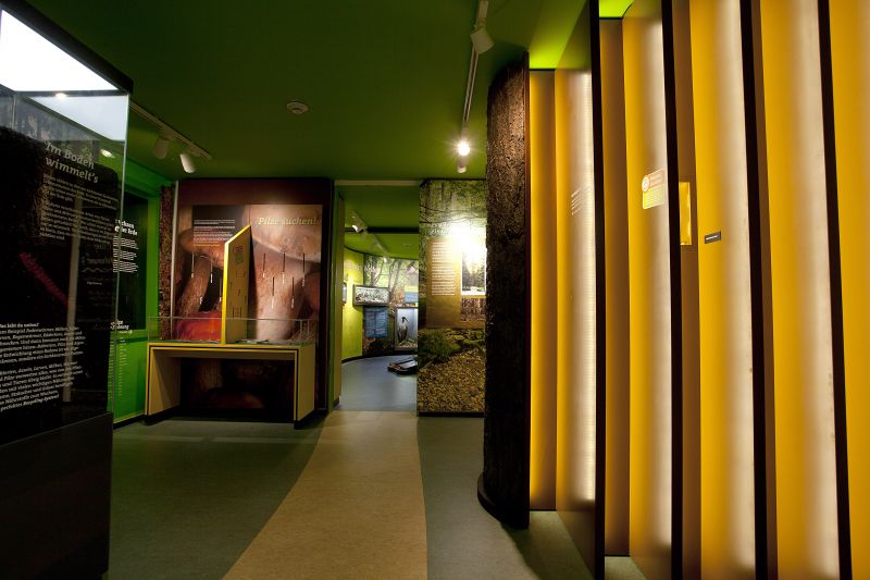 Wer traut sich freiwillig alleine bei Nacht in den Wald? Wer kann das Rascheln im Unterholz deuten? Wer kann die Laute und Rufe der Waldtiere oder Gerüche und andere Erscheinungen identifizieren? Das Thema wird in vielen Bereichen der Ausstellung aufgenommen. Mit beeindruckenden technisch anspruchsvollen und methodisch unterschiedlichen Lösungen gehen wir den Geheimnissen der Natur nach.
